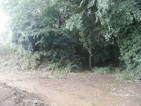 | 北側から見た古館。比高10mほどの台地の先端部近くにある。 | この城は藪がひどすぎてわけの分からない写真しか撮影できなかった。これは1郭腰曲輪の城塁。 |
