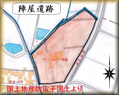 「いばらきデジタルまっぷ」が示している範囲からすると、右の図のような形状の陣屋であったと思われる。
