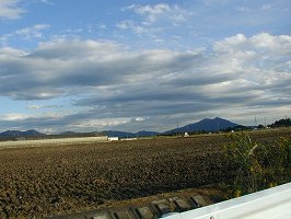 御殿城の跡。すっかり耕地整理が進んでしまって壊滅状態である。しかし、図にもある稲荷だけは水田の脇に残っている。遠くに筑波山がそびえているのが見える。 |