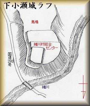 *下小瀬城(小瀬出城)は、緒川村総合センターの建設で遺構はほぼ隠滅状態にある。そこで「重要遺跡報告書」の図面を基にしてラフにしてみたが、実際にこのような形態であったのかどうかはもはや知るすべがない。
