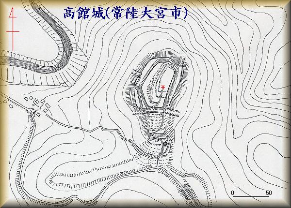 | 小瀬氏の古い時代の居館であったという。また、現地で伺った話では「戦国時代に佐竹氏の物見のようなものがあったところだ」ということであった。部分的に鋭くなった堀、きちんと掘られた竪堀などからして、戦国期まで使用されている可能性は高いと思われる。 | |