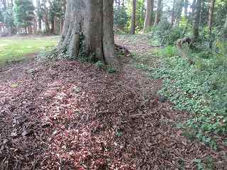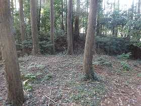 上記の段差以外にも北東側には1m未満の高さの低い土塁が廻っている部分がある。その北東部分には井戸の跡のようなかなり大きな窪みも見られるのだが、あるいはこれらは植林等の作業が行われていた時代の産物なのであろうか。どこまでが遺構なのかよく分からないのである。
