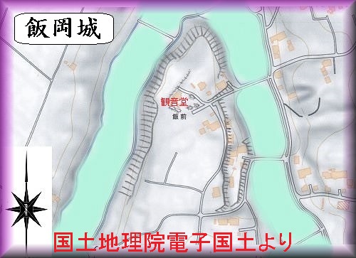 『城郭体系』には飯岡城が収録されており、飯前の地にあったというが、この城は『遺跡地図』にも載っていなかったため、場所がよく分からなかった。