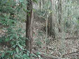 地元の人に聞くことができず場所が特定できなかった。しかし、この地区の一番高い所(公園になっている)には台地の縁辺に土塁を回しており、その東側には写真のような切通しの道が見られる。土手も切岸のようであり、この写真の辺りが何らかの城館遺構ではないかと思われる。