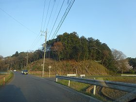 野田館は、野田小学校の北西500mほどの所にある。「野田小前」の信号の南西側の道から入っていくとすぐ右脇に池があり、正面の写真の土手上が館跡らしい。比高5mほどで、上は広い畑地となっているようだ。かつてはL字型に土塁と堀が残っていたというが、現在では見られなくなってしまっている。