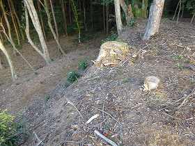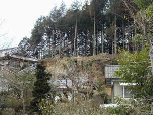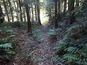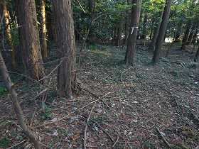 城内は山林化している。少し歩いてみたが、明確に遺構と分かるようなものはなかった。高さ1mほどの微妙な段差があり(写真)、あるいはこれが遺構なのかもしれないが、断定できるようなものではない。