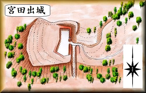 このように宮田出城は、単郭ながらなかなか特徴的な構造を有した城郭である。宮田城とすぐ近い位置にあるために出城と呼ばれているのだと思うが、どちらかというと宮田城に対する付け城と見た方がしっくりする城郭である。
