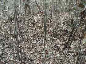 登り口があるかと思って周囲を歩いたのだが何にもない。それでもたいした高さではないので無理やりよじ登ってみたが、見渡す限りのガサ薮で何があるのかさえ分からない。冬にならないと内部探索は無理のようである。ただ南側の台地基部は、きちんと切り離されており、これが堀切の跡であることは間違いないであろう。