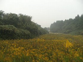 この細長い谷津の西側(左側)に横堀があるらしいが、この状態ではとても入っていくことができそうもない。それにしても谷津内のセイタカアワダチ草の繁殖力もすごい。これでは日本の旧在種はどんどん駆逐されてしまいそうである。