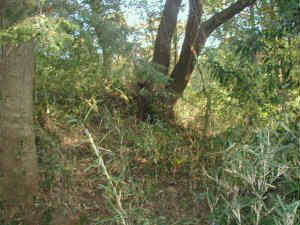 これはまた、何の写真だか分からなくなってしまったが、3郭から、東側の下に延びている土塁を撮ったものである。なんのためにこの方向に土塁を伸ばしたのかはよく分からない。この方が塁線上から攻撃をしやすいものであろうか。