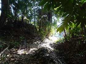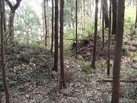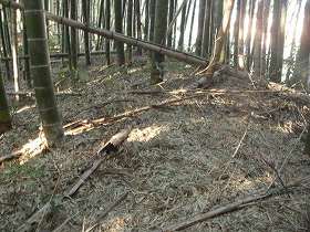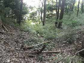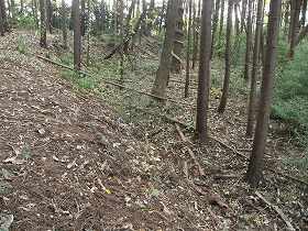 | 本城東側の竪堀。 | 本城西側の城塁。 |