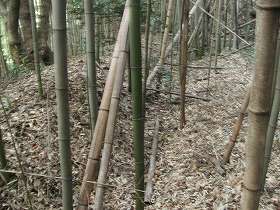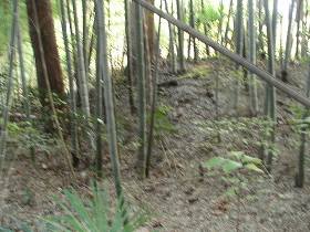| 真福寺の前の大銀杏。紅葉がとてもみごとであったのだが、デジカメではあまりきれいに撮影できないなあ。 | 新福寺裏の竹藪の中にある土塁。しかし城郭遺構といえるのかどうか・・・。 |