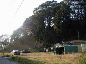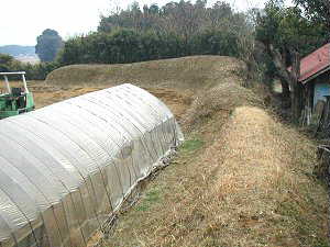 北東側の水田から上がってくる切り通しの道が堀切の名残であると仮定するならば、この切り通しと土塁に囲まれた畑地が主郭であったといえよう。台地北側の先端部分にも土塁があるらしいが、こちらは民家の奥のためきちんと確認はしていない。