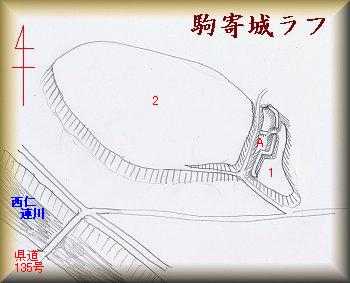 さて、下でも述べているが、この城は、逆井城の支城という伝承を持っている。それが真実であれば、逆井城のある2郭の側こそが主郭部というようにも想像できる。また、駒寄城は、逆井城の支城と言いながら、西仁連川の東側にあり、逆井城の対岸に位置している。この点は支城のあり方としては矛盾しているように思われるのであるが、川の交通を、両岸から掌握しようとしていたということになるのであろうか。