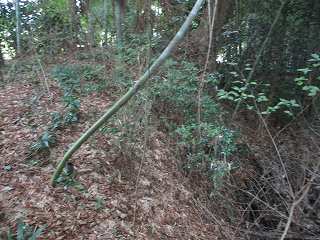 遺構なのかどうかよく分からないのだが、Aには土塁と堀の痕跡のようなもの、BとCには土塁が残されている。ただし、BとCの土塁は、後世のものである可能性が高いように思われる。