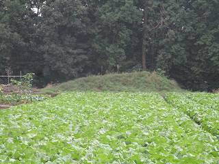 | 1郭側は城塁が窪み、内枡形の形状を成している。 | 2郭内部。一面の広大な畑である。 |