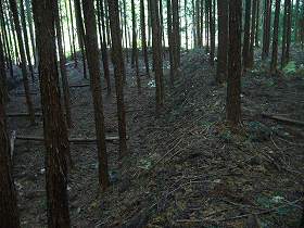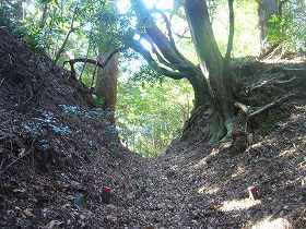 | 南側の腰曲輪。 | 北側下の堀切。 |