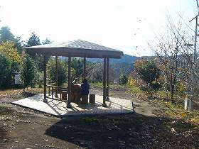 | 西側から見た大中館(竜蓋城)。比高50mほどの山である。手前の低い部分は公園となっている。 | 公園にある東屋。 |