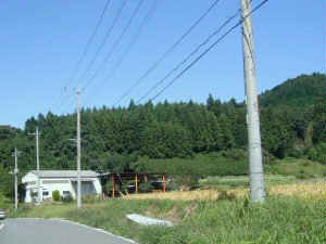 | 〈以前の記述)「茨城県史跡地図」には「舘館」とあるが、この名称はどう考えておかしい。大中地区舘にあるので、大中館とする方が順当だと思われるので、大中館としておく。 大中館は、国道349号線の東側、里美村役場の800mほど東側の比高25mほどの台地上にあった。台地の北側には保険センターがある。この台地は公園化されており、各種の植物が植えられ、その案内の看板がたくさん建っているが、城址の案内を示すものは1つもない。里美村はどこに行っても、城址の案内がない。史跡には力を入れていないのだろう。 写真の休憩所は台地先端部の平坦地にあったものである。50m×20mほどの広さである。周囲は郭のような急斜面でもなく、戦闘的な感じがしないので、ここが館跡だとすれば、中世初期の居住用の居館であろう。この北側の台地の基幹部の方は地図で見るとさらに一段高く平坦部もありそうだ。あるいはそちらが城址なのではないかとも思われるが、藪の中に入っていけず未確認。 「城郭体系」には荒蒔義直の居城と伝える「大中城」の記述があるが、大中地区に他に城址はあまりなさそうなので、ここのことを指していると思われる。 |