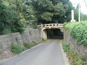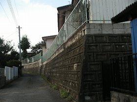 | 観音堂の南側の切り通しの道路。みるからに堀切の跡というように見える。 | 保育園西側の土手もかつての城塁があったところであろう。 |