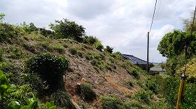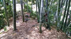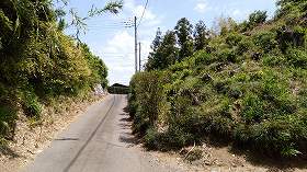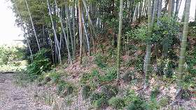 | 中央の道路によって削られている部分。 | 土塁の北西部分。北側の道路は切通しの通路であったようだ。 |