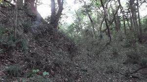 仕方がないので、テキトーなところから直登して登ることにする。台地の東側下には廃墟になってしまったアパートがあったので、その付近の空き地に車を停めて、東南下辺りの斜面を直登していった。高さは10m未満であるが、急峻なので、木に掴まりながらやっとのこと、登っていくのである。