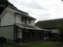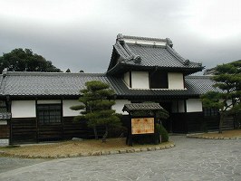 | 穂積家入り口の長屋門。2階建てで。まるで城郭のような雰囲気である。ただしこの2階部分は、昭和初期に増築されたものであると言う。 | 穂積家の母屋。広くて立派である。 |