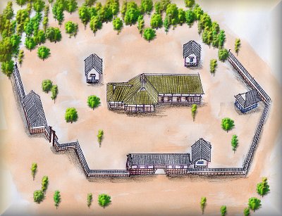 りゅうがい古屋敷は、石岡川に臨む比高10mほどの台地を利用して築かれていた。