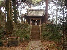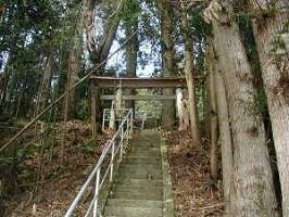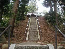神社は下から比高20mほどの所にある。山上はこのさらに15mほど上になるが、山林化していて道はない。