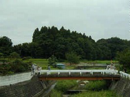 その南側には酒工場、さらに一段下に民家があり、その南側の花貫川に面した辺りまでが城域であったようである。酒工場のある部分は、東側の低地から見ると、比高10mほどの高台になっているが、西側では下の道との比高差がなくなっている。この辺りには堀があったのであろうか。現在でも小川が流れているが、これが往時はもっと広く、堀の役目を果たしていたのかもしれない。この酒工場のある部分に堀切もあったらしいが、これは現在では埋められてしまっているということである。