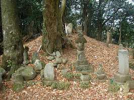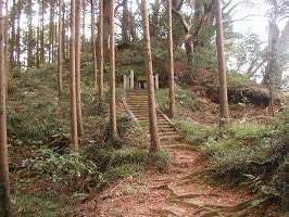 | 神社の背後の山頂部分。まるで古墳のような円形をしている。 | 山頂部分から神社の方向を見た所。 |