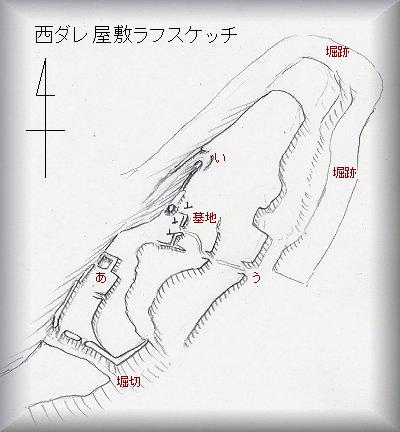 西ダレ屋敷は「屋敷」という名称ではあるが、もともとは城郭というにふさわしい規模を持っていたようである。しかし改変が著しく、旧状をしのぶのも難しいという現状にある。