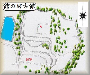 地元の方に伺った所、「昔から館(たて)の坊というので何か館があったと思うが、伝承は特にない。畑からは土器がたくさん出て、古代から集落があったところだといわれている。畑は昔からこの様な形態であった」とのこと。耕地整理はそうとう早い時期に行われたものらしい。」