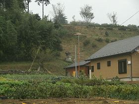 以前の記述にもあるように、玉里東小学校の東800mほどの所で、県道194号線沿いにあったらしい。城址の北側には神社の祭られている妙見山古墳がある。藪になっていて分かりにくいが、比高7mほどあり、平地の中では目立つ高さである。これを目標にするのがいいかもしれない。城址一帯は集落になっているが、集落を囲むように東西には水田地帯が広がっている。レンコン畑になっている部分も多く、そうしてみると、集落のある地帯は周囲よりもわずかに微高地となっているように見える。