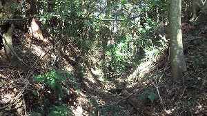 | 東側の城ノ内館から見た要害城。 | 要害城の堀切。深さ3m、幅6mほどである。 |