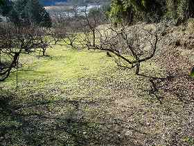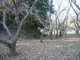 台地そのものはかなり広大だが、ほとんどの部分が削り取られてしまっていおり、そこは一面の栗林になっている。底の薄い靴で歩いていると栗のイガを踏んで足を痛めてしまいそうだ。南側には削り残された部分が出っ張っている。この高まりがかつての台地地表面に当たるのであろう。しかしここにも明確に遺構といえるものはなかった。西側端の林の中は、それほど削られているとも思われないが、やはりはっきり遺構といえるものはない。結局、城の痕跡を示す明瞭なものはないといってもいいかもしれない。