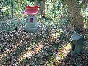 | 2の郭の西側一帯は削り取られている。 | 3の郭に祀られている祠。 |