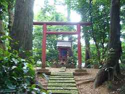 | 北側の虎口脇にある祠。 | 南側城塁上の神社。 |