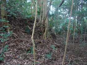 | 1郭南側の土橋状通路。 | 1郭南側城塁。 |
