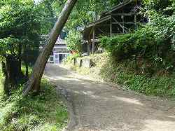 | 西側にある香取神社。 | 神社から館跡に降りていく切通し道路。 |