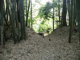 | 西側土塁にある虎口。 | 南側下の横堀。 |