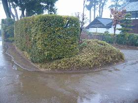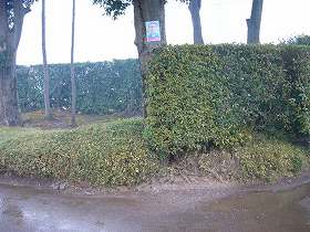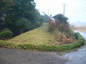 | 刈間城の土塁。比高二重土塁であったようだ。 | 同じく西側の土塁。 |