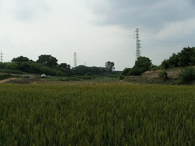 川沿いの比高5,6mほどの微高地にあった平城のようである。一番川に近い先端の部分はガサになっていて、遺構があるのかどうか分からない。その北側は畑地となっていて見通しはよいが、やはり遺構らしきものはない。