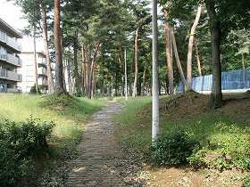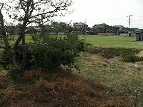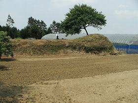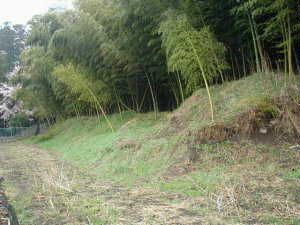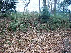 | 東側に一部だけ残っている土塁。 | 同じく、南側にわずかに残る土塁。 |