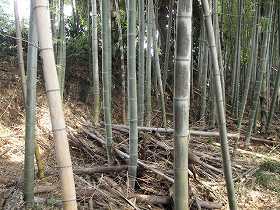 この裏手は竹林となっている。ここが郭内であると思われるのであるが、雨であまり歩き回れなかったので、館としての形状をきちんと確認することはできなかった。