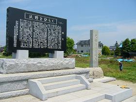 | 雄山寺跡に残る板碑。 | 八坂神社の北側に残る堀跡。 |