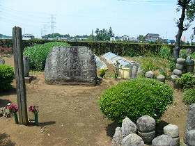| (以前の記述)手子生城は、戦国時代に小田氏の家臣の赤松則実が居城としていた城であったという。城を築いたのは手子丸という人物だったという伝承があるが詳細は分からない。戦国時代になると、佐竹氏と小田氏の戦が繰り返し行われ、小田氏は小田城を追われたりしているが、その際にこの手子生城に籠もって佐竹勢を迎え撃ったりしている。 手子生城は、平城であった。そのため周辺は畑地や宅地になってしまうと遺構はほとんど分からなくなってしまう。かすかに水堀の跡が見られる程度であり、何もなければ城址として発見するのはとても困難であるだろう。しかし写真のような立派な城址碑が建っているので場所はすぐ分かる。 |