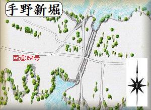 | (以前の記述)手野城は、国道354号線の「手野坂下」というバス停の北側にある台地上一帯にあった。台地の東側には法光院という寺院があるが、これも城址の一部にあたるであろう。城址の台地の北西側はJR常磐線の線路によって削られている。法光院裏手の墓地の辺りが3郭のようだが、この西側が主郭部に当たると思われる。畑を進んでいくと写真の土橋の跡のような部分がある。この両脇は空堀になっているようだ。この先が主郭部であると思う。25m×80mほどの広さがある。主郭部の南側には1,5mほど下に幅7、8mほどの腰曲輪がある。また、主郭南西部には虎口らしき部分もあり、ここから下の腰曲輪に降りていくようになっている。 手野城は、小田城の支城として小田朝重の子の重継が居城としてたのに始まるという。。戦国時代になると、中根氏がこの城を預かり城主となっていた。天正年間、佐竹氏によって小田城が落城、小田氏が滅びると、この城も落とされ、廃城となった。 |