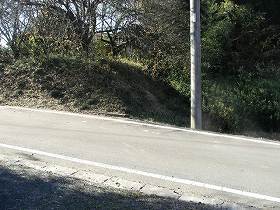 城の東側の段々の腰曲輪のさらに東側は尾根続きとなっている。途中のボトム部分に土橋状の部分があって、そこから地勢が上がったところに墓地がある。墓地の周囲は若干切岸整形されており、一部土塁らしきものも見られるが、これは墓地の造成に伴うものと見るべきであるかもしれない。この墓地の辺りは全体に自然地形のままであるので、実質的な城域は、西の山城との間のボトム部分の土橋というべきであろう。