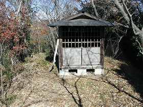 | 愛宕神社のある郭は岩場によって支えられ、周囲には岩そのものを城塁として用いられた城塁がある。これはとても正面から登れないでしょ? | 山頂にある愛宕神社。3月15日の祭礼の日にはみんなお参りに来るという話であったが、それ以外に人が訪れることはほとんどなさそうだ。 |